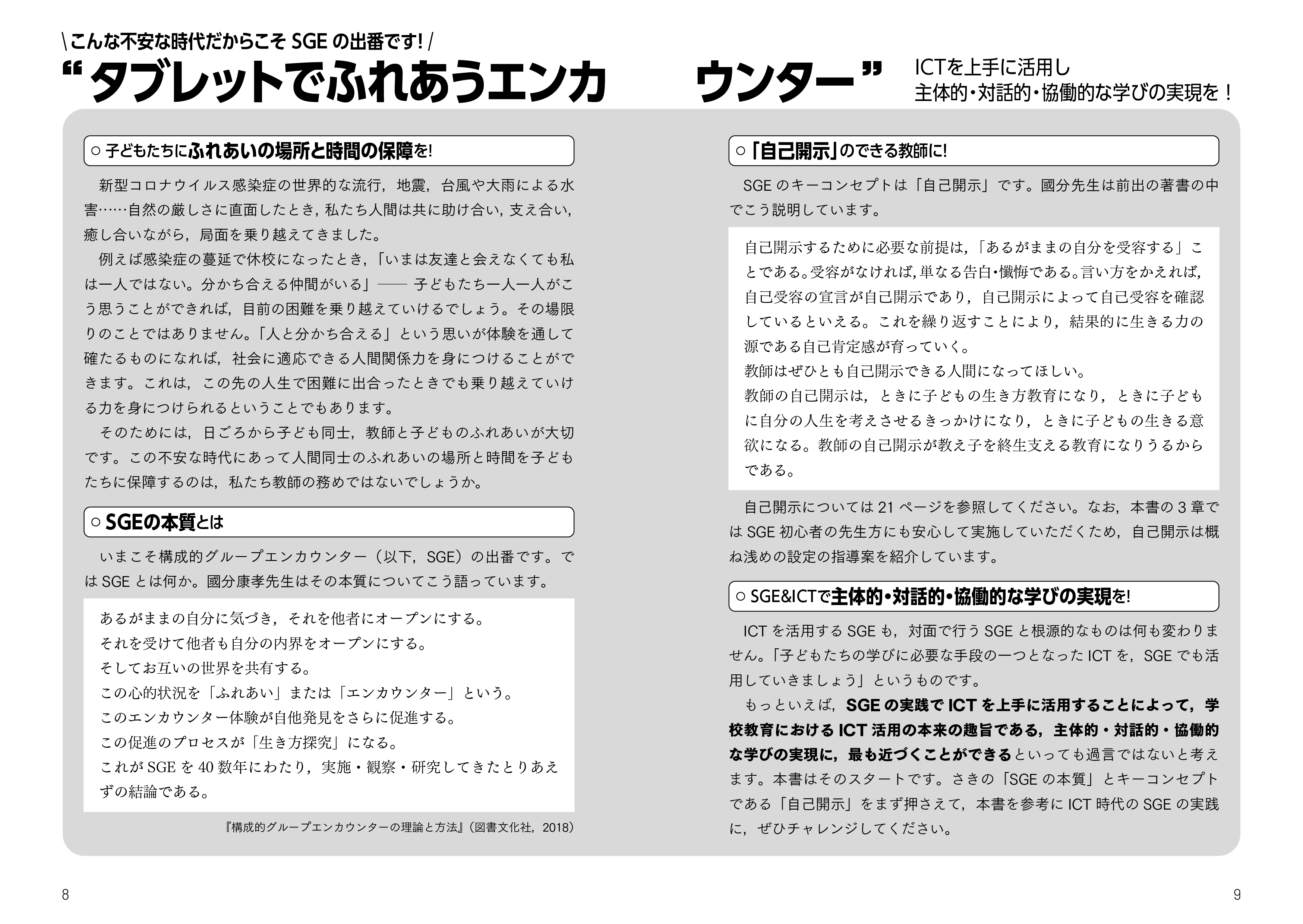 本書では,学校でタブレットを使ってできる人間関係を育てる構成的グループエンカウンター(SGE)を紹介します。